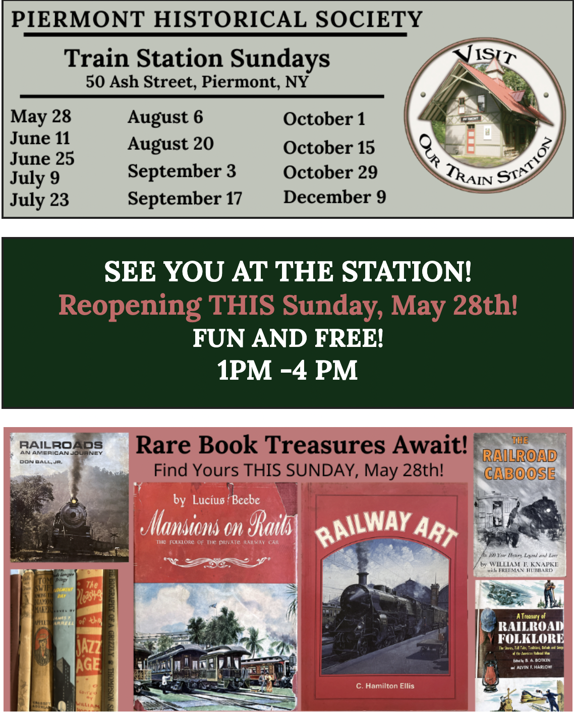Piermont Historical Society invites you to the reopening of Piermont Train Station, THIS SUNDAY, May 28th, 1PM-4PM