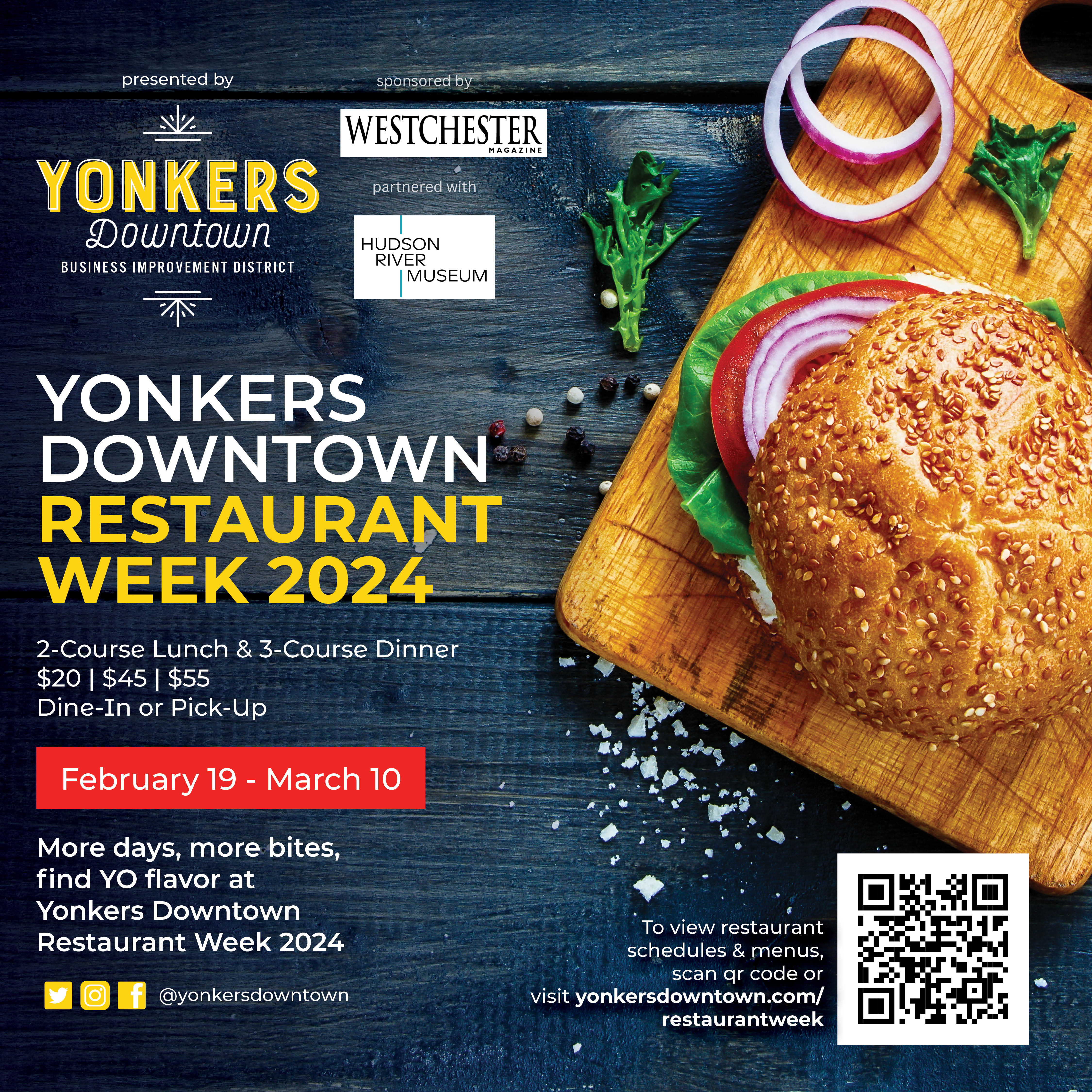 This year’s Yonkers Downtown Restaurant Week offers even more time to taste what’s in Yonkers! The Yonkers Downtown/Waterfront Business Improvement District (YDWBID) is thrilled to announce that the annual promotion has been expanded to three full weeks (Feb 19-March 20). Fourteen restaurants will be offering pre-fixe, $20 two-course lunches and $45 or $55 three-course dinners. Enjoy these meals any way you want, whether that’s lunch with friends, having a fun night out, or picking up to have a cozy evening at home.