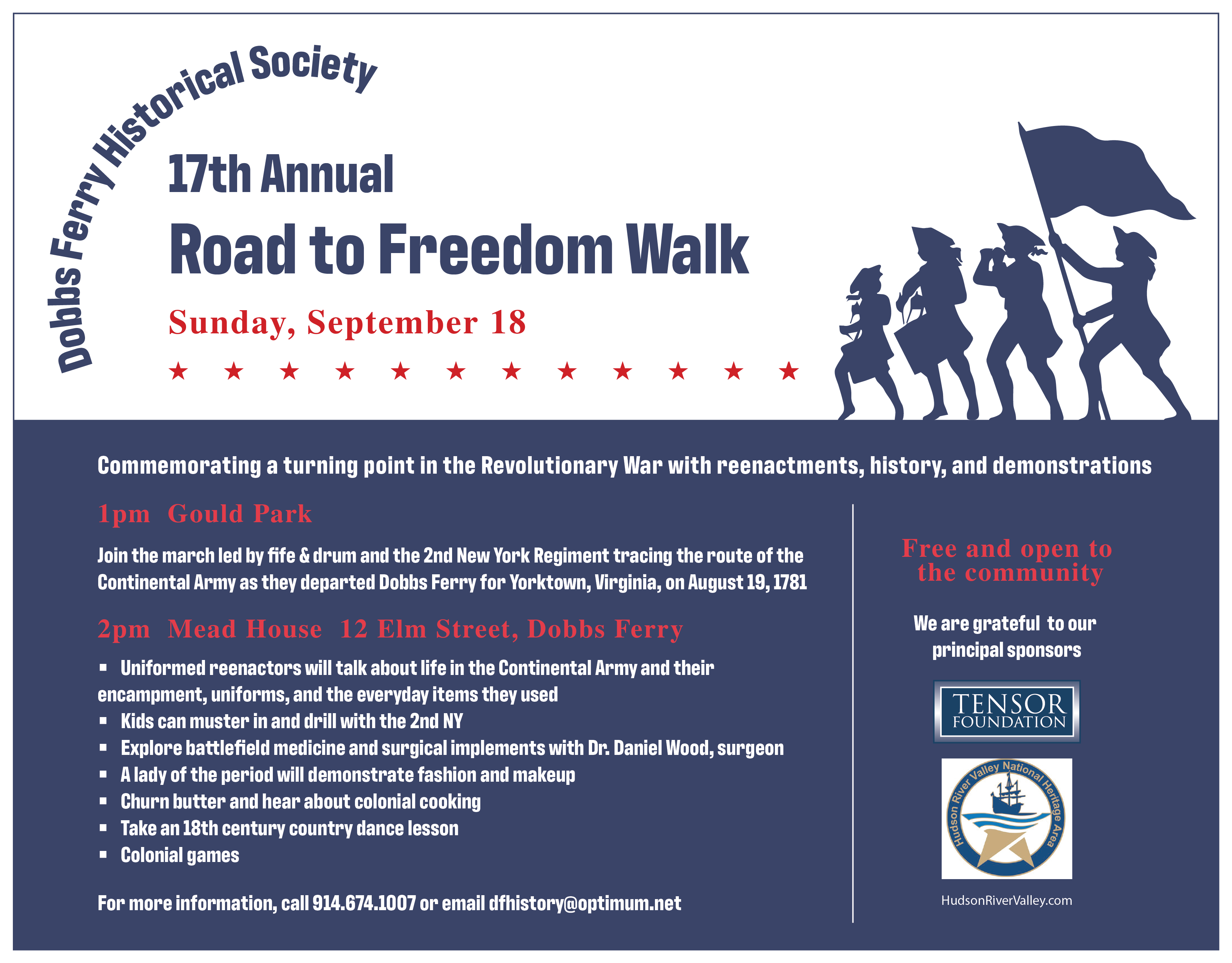 Gould Park Washington Avenue and Ashford Avenue, Dobbs FerryThe Dobbs Ferry Road to Freedom Walk begins at 1:00pm at Gould Park, Dobbs Ferry. It commemorates a turning point in the Revolutionary War when on August 19, 1781, the…