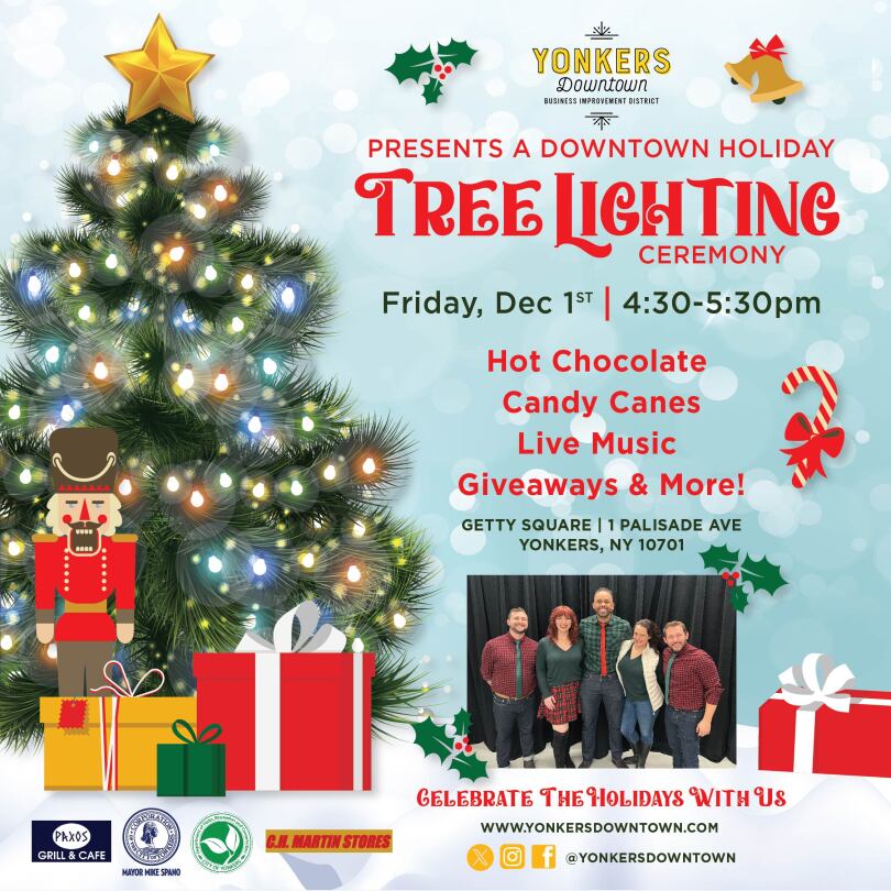 Getty Square 1 Palisade Ave, YonkersThe Yonkers Downtown BID presents a downtown holiday tree lighting ceremony. Join us at Getty Square in Yonkers on December 1st as we light up the 20ft holiday tree! There…
