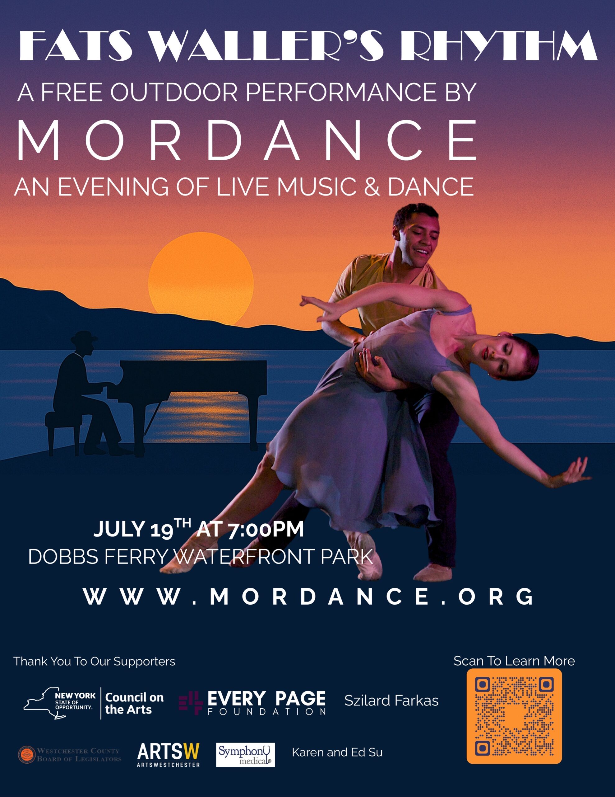 Dobbs Ferry Waterfront ParkJoin MorDance for a joyous evening of live music and dance under the summer sky on Saturday, July 19 at 7 PM at Dobbs Ferry Waterfront Park. Fats Waller’s Rhythm is a vibrant, jazz-infused ballet set to the swinging sounds of legendary composer and pianist Fats Waller. Blending classical ballet with the infectious energy of Harlem stride and…
